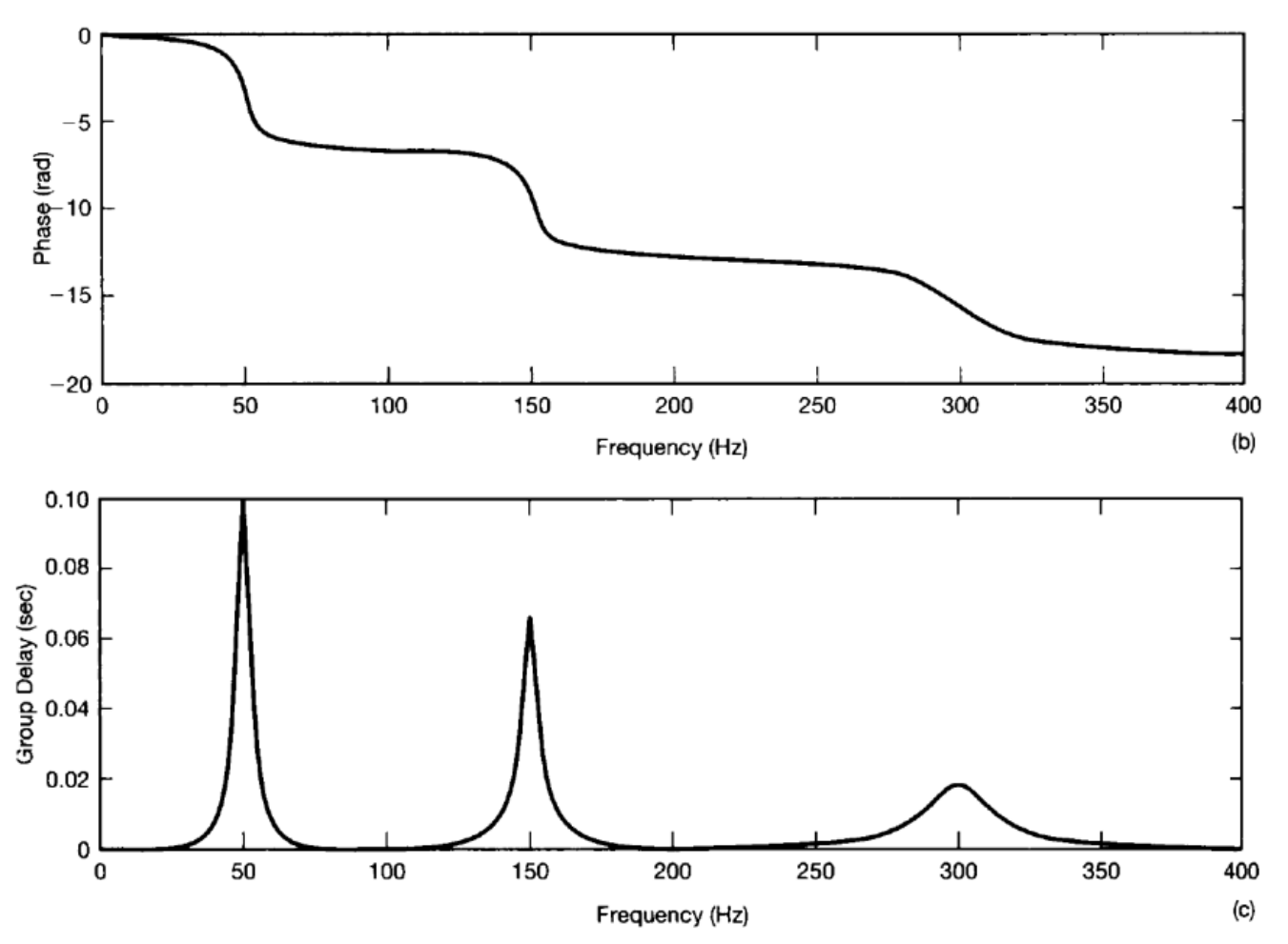 where the phase shift term is called the group delay of the system at , since in time domain this term can represent a time delay with . We can get the group delay by