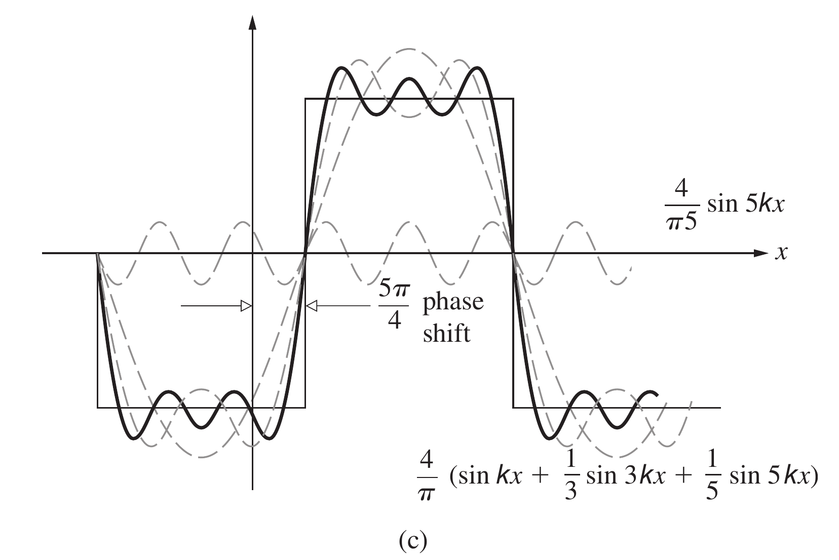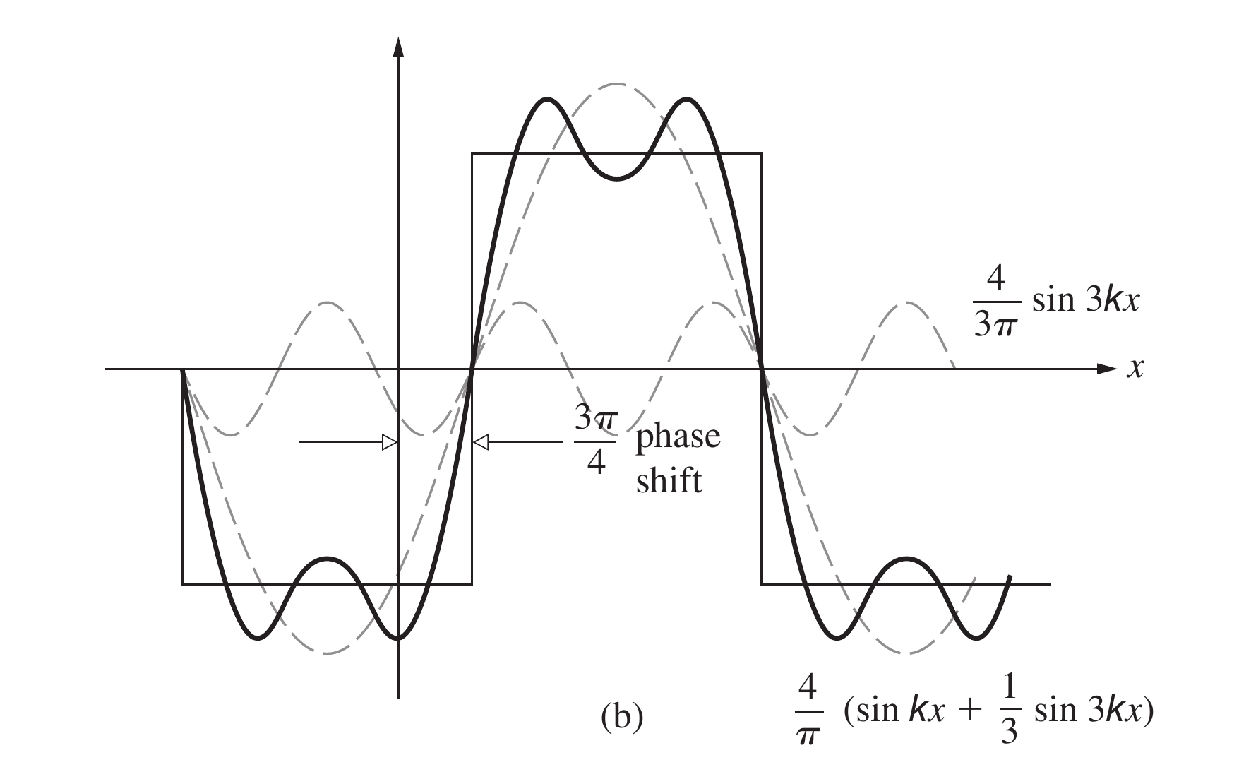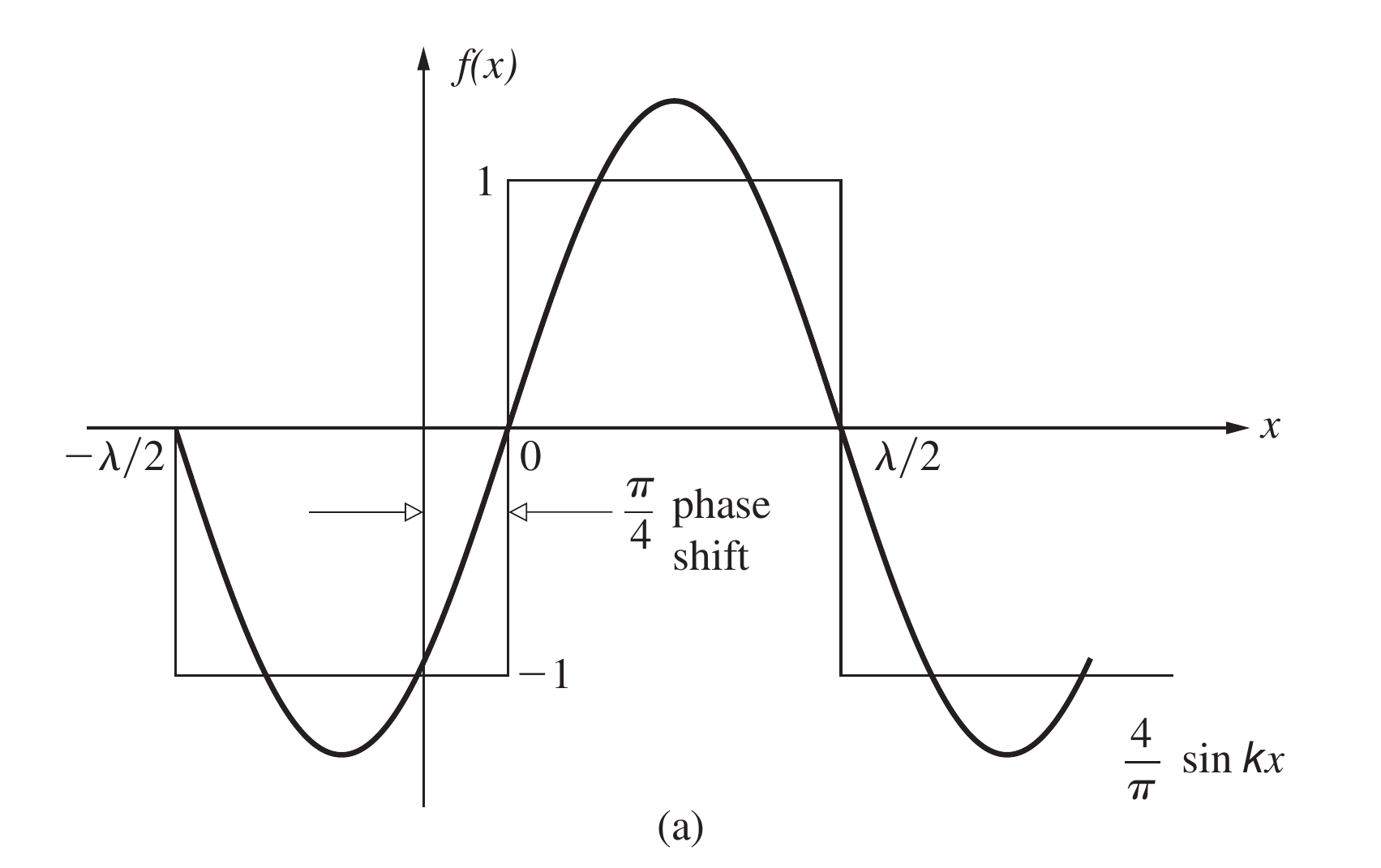 拿一个矩形波举例子, 如果它要进行如下图中的平移, 那么第一个角空间周期为的正弦函数需要有的相位移动