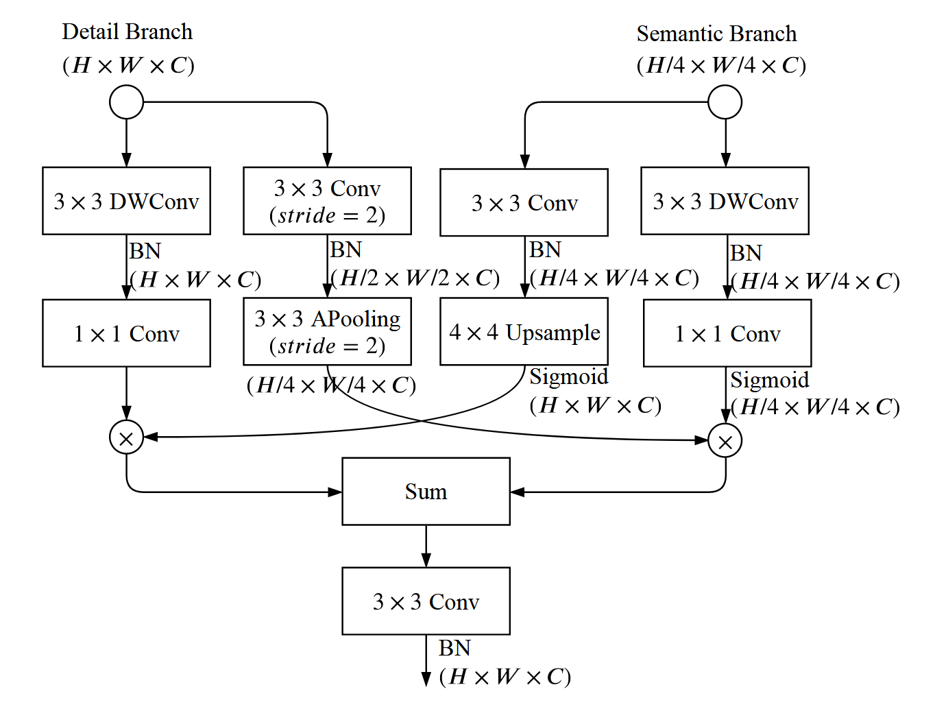 - Detail Branch, with wide channels and shallow layers to capture low-level details and generate high-resolution feature representation