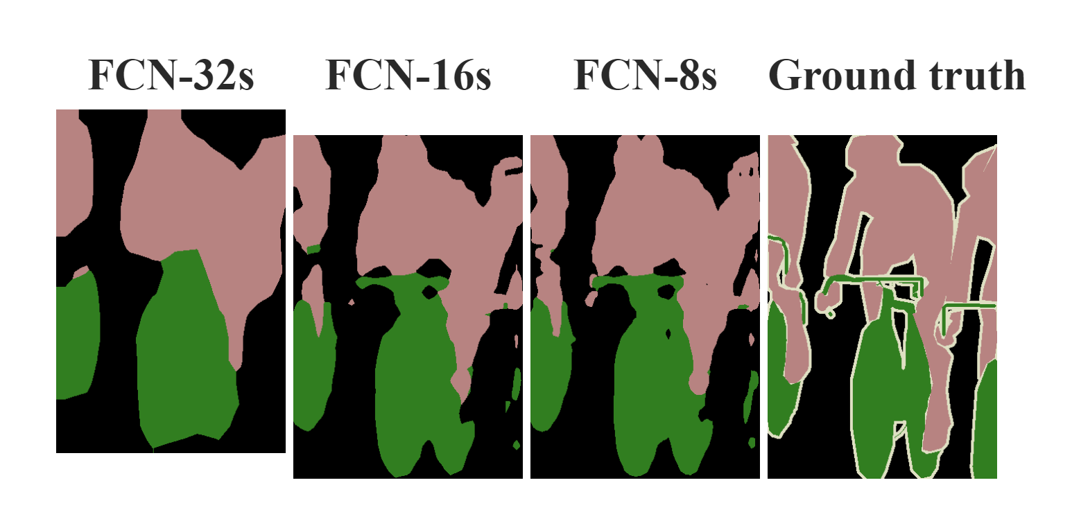 As the figure shown below, we have different ways to do the unsampling in this last layer. FCN-32s applies 32x unsampled prediction directly from pool5. FCN-16s first applies a 2x unsampled prediction from pool5 and then combine the result with the information from pool3, which improves segmentation accuracy. FCN-8s further optimized the accuracy by combing the information in pool3.