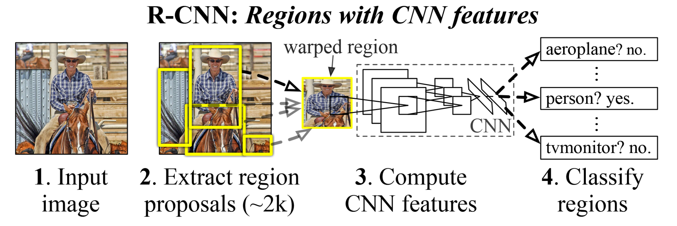 The extracted feature vectors from the region proposals are fed into a separate machine learning classifier for each object class of interest. R-CNN typically uses Support Vector Machines (SVMs) for classification. For each class, a unique SVM is trained to determine whether or not the region proposal contains an instance of that class.