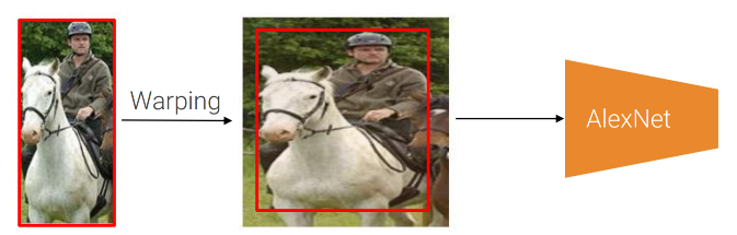 Before warping, the region size is expanded to a new size that will result in pixels of context in the warped frame. The CNN used is AlexNet and it is typically fine-tuned on a large dataset like ImageNet for generic feature representation.