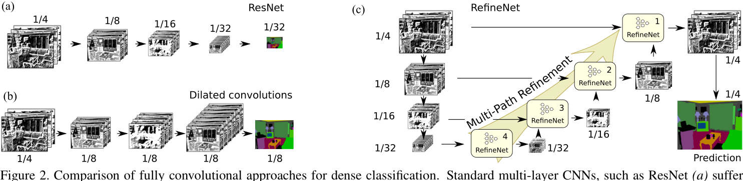 RefineNet proposes a new method to enjoy both the memory an computational benefits while still able to produce effective high-resolution segmentation prediction via multi-path refinement