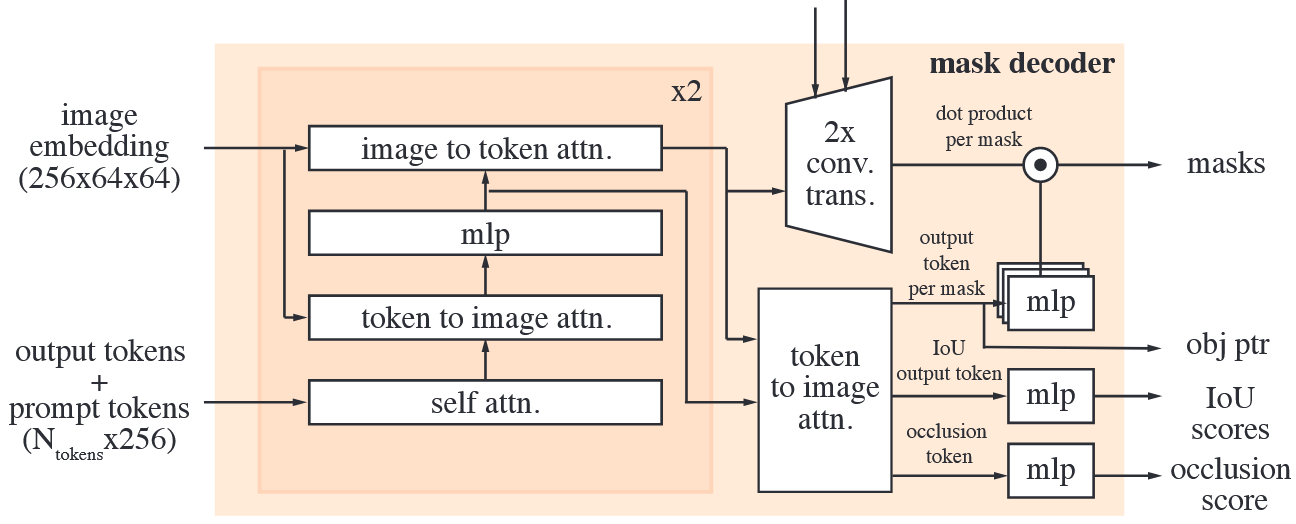 - Pass the updated token embeddings to s small -layer MLP that outputs a vector matching the channel dimension of the upscaled image embedding